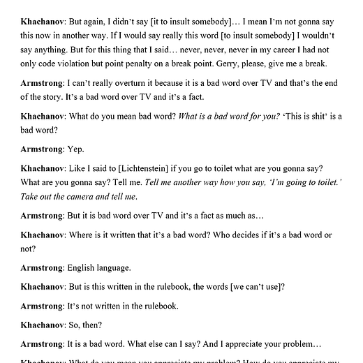 I don’t care about who was right and who was wrong here. None of this is really worth debating and frankly, in solidarity with Khachanov, who gives a shit? But this bizarre exchange does bring up something I’ve been talking about for a while. Tennis really does need to stop treating itself as if the sport is played in some 18th century monastery. The audible obscenity rule, aside from conforming to tennis’ desire to uphold its gentlemanly values, is mostly in place to protect children’s sensitivities at home during broadcast and probably to comply with rights-holder and broadcaster standards. But considering the world we live in, in the grand year of 2021, is this really necessary anymore, at least in its current format? Nearly zero children actually watch cable/linear TV these days, with much of tennis being broadcast on-demand via streaming options. And even if the odd swear word does slip through and a kid is nearby at home, isn’t that partially what delays are for? You can’t watch a tennis match via most broadcasters without being a few points behind the actual live score. Can’t someone bleep or mute that shit out for the cable viewers and their television standards and leave the other streams alone?